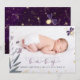 Comparte la alegría de tu nuevo bebé con este encantador anuncio de nacimiento. Con una preciosa foto del bebé, delicadas mariposas y acentos dorados brillantes sobre un fondo púrpura profundo, es una hermosa manera de presentar a tu pequeño.