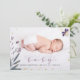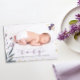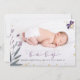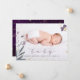 Comparte la alegría de tu nuevo bebé con este encantador anuncio de nacimiento! Con una preciosa foto del bebé, delicadas mariposas y acentos dorados brillantes sobre un fondo púrpura profundo, es una hermosa manera de presentar a tu pequeño.