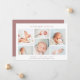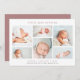 Una elegante y moderna tarjeta de presentación de nacimientos con seis fotos de recién nacidos dispuestas en forma de collage. El nombre de su bebé aparece en la parte superior, con sus estadísticas de nacimiento y mensaje familiar debajo. Una hermosa tarjeta de fotos de anuncio de nacimiento neutral de género en una variedad de colores para anunciar la llegada de tu pequeño.