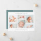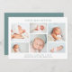 Una elegante y moderna tarjeta de presentación de nacimientos con seis fotos de recién nacidos dispuestas en forma de collage. El nombre de su bebé aparece en la parte superior, con sus estadísticas de nacimiento y mensaje familiar debajo. Una hermosa tarjeta de fotos de anuncio de nacimiento neutral de género en una variedad de colores para anunciar la llegada de tu pequeño.