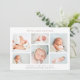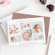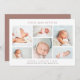Una elegante y moderna tarjeta de presentación de nacimientos con seis fotos de recién nacidos dispuestas en forma de collage. El nombre de su bebé aparece en la parte superior, con sus estadísticas de nacimiento y mensaje familiar debajo. Una hermosa tarjeta de fotos de anuncio de nacimiento neutral de género en una variedad de colores para anunciar la llegada de tu pequeño.