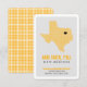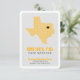 Háganles saber a dónde vas con esta elegante invitación en movimiento. Presenta el estado de Texas en un patrón de cuadrícula con un corazón que puede mover para mostrar dónde está su nueva casa. El reverso presenta una versión más grande del mismo patrón cuadrado o puede reemplazarla con su foto familiar favorita. Viene en naranja quemado, marrón, rojo, azul de la bandera estatal, verde, morado, naranja, negro y amarillo - la mayoría basado en los colores de las escuelas estatales. Productos a juego disponibles.