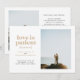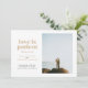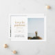 Si has tomado la decisión de escaparte en lugar de esperar a una fecha de boda pospuesta, comparte tu gran noticia con esta tarjeta de anuncio de fuga. Cuenta con texto neutral en color taupe y gris oscuro y espacio para una sola foto vertical en la parte frontal, así como espacio para la fecha y el lugar de tu escapada. La parte trasera de la tarjeta tiene espacio para otra foto y una nota personal.