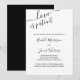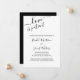 Tarjeta de anuncio de aplazamiento de boda con paleta de colores minimalista en blanco y negro. "El amor es paciente", junto con los nombres de la novia y el novio, está escrito a mano en elegante letra cursiva. La plantilla está configurada para que personalice su mensaje de actualización de boda según sea necesario. La redacción de la muestra dice "debido a eventos recientes, la boda de [sus nombres] ha sido pospuesta. Les haremos saber tan pronto como establezcamos una nueva fecha. Fue una decisión difícil y agradecemos su comprensión" - que puede mantener o editar como desee.