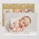 Una elegante tarjeta de anuncio de nacimiento de vacaciones de 4 fotos con su foto favorita especial, el nombre del bebé y estadísticas de nacimiento, y su mensaje de vacaciones en tipografía moderna clásica sobre un mensaje de guión chic. Diseñado por Thisisnotme©