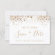 Una chica y de moda Guardar la tarjeta de fecha para una fiesta de cumpleaños número 40 (o cualquier edad). Un elegante fondo blanco decorado con un polvo falso purpurina dorado. Personalice y agregue una fecha, un nombre y un texto. Letras de colores dorados. El texto: Save the Date se escribe con un gran guión de estilo escrito a mano.