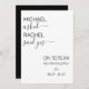Este elegante y sencillo anuncio de compromiso de boda es perfecto para cualquier pareja moderna. Cuenta con la frase "(Nombre) preguntó, (Nombre) dijo que sí" en una tipografía cursiva manuscrita negra sobre un fondo blanco. Es minimalista, elegante y único; el diseño perfecto para enviar a amigos y familiares.