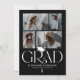 Announce your graduate’s milestone in timeless, sophisticated style with this elegant black and white graduation announcement card. Featuring a trendy black background, the design highlights the word “GRAD” in a modern serif typeface, accented with a stylish graduation cap icon above the “R.” The flowing tail of the “R” transitions into a sleek tassel that connects the graduate’s name, school, and class year, creating a cohesive and high-end finish.