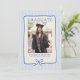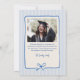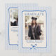 Elegant Blue Stripes Bow Frame Graduation Photo Announcement.