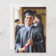 Elegante invitación de graduación universitaria verde con una gorra de oro y simple tipografía moderna de oro claro para el nombre del graduado, año de clase, universidad o universidad, grado y especialidad o honores. La foto del graduado llena la parte trasera de la tarjeta.