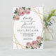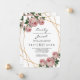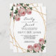 Design features an elegant faux gold glitter geometric frame pattern. Overlaid with watercolor pink roses and greenery foliage on two corners. Personalize this template to add your information on the front and back of the card. Click to customize further to make more changes. Everything is customizable.