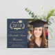 Announce your graduate's academic achievement with this elegant dark blue college graduation announcement featuring their portrait, a timeless laurel crest with a grad cap mortarboard and diploma encasing their class year, and classic gold script and serif typography -- creating a traditional look that feels polished and enduring. The clean design showcases the graduate’s name, university, degree, and class year in a clear, sophisticated format -- perfect for sharing milestone news with family and friends. Add 3 additional photos on the back and your personalized message. Fully customizable, this graduation announcement allows you to adjust it for a high school graduate as well.