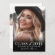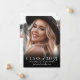 A simple and elegant boho-inspired graduation announcement with a modern, high-contrast look. The front features a full-page photo with a black gradient at the bottom, allowing the white text to stand out clearly and beautifully. Change to “Class of 2026” or any year in clean white fonts, followed by the graduate’s name and school in refined handwritten script for a timeless yet updated feel.