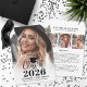 The back includes a three-photo collage or photo strip, along with space for a personal message highlighting the graduate’s achievements and future plans. The all-white background paired with black fonts keeps the design modern, versatile, and sophisticated. Fully customizable to match your style or school colors.