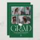 Announce your graduate’s milestone in timeless, sophisticated style with this elegant green and white graduation announcement card. Featuring a trendy green background, the design highlights the word “GRAD” in a modern serif typeface, accented with a stylish graduation cap icon above the “R.” The flowing tail of the “R” transitions into a sleek tassel that connects the graduate’s name, school, and class year, creating a cohesive and high-end finish.