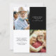 Modern death announcement card with photo collage and custom text offers a warm and respectful way to notify friends and family of a loved one’s passing. This professionally designed card features a four-panel layout with space for two full-color photos, the individual's name, birth and passing dates, and a short tribute message. The reverse side provides space for a formal death announcement, including details of a memorial service, surviving family members, or any other information. The combination of black and white backgrounds with classic serif typography adds a timeless and elegant touch. Ideal for mailing or sending digitally to extended family, friends, or members of the community, this customizable death notice card is a meaningful way to honor someone's memory with clarity and care while sharing important details with those who knew them.