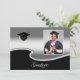 An elegant graduation party invitation with a silver-like appearance. The silver and black sections on the front are separated by a unique, curved border. The photo and all text are easily changed by using the template. Selecting “Personalize this design” offers you several edit options to easily change the text (wording, plus type font, color, size, position) and to edit the design elements. You may also want to scroll down to the section “Transfer design to a product” for a few suggestions about other items this design can be used on.