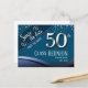 Guardar la fecha tarjetas postales de reunión de exalumnos de secundaria o de clase. Tema azul con falso foil plateado 50 con texto blanco en negrita. Todo el texto es personalizable excepto el 50 y se puede cambiar según las necesidades de su fiesta. También se pueden encontrar pancartas de clase en mi tienda.