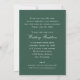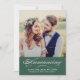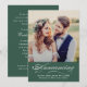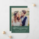 Anuncie a su boda a su familia y amigos e invite a celebrarlo con una recepción posterior a la ceremonia. Este diseño de tarjeta de foto muestra una foto de la novia y el novio con el anuncio en un guión elegante y los detalles de su boda y nombre casados. La parte trasera de la tarjeta invita a una celebración de boda. Se incluye información de RSVP. El color y el texto de color verde pino/ cazador se pueden personalizar según sus necesidades específicas.