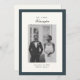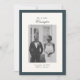 Anuncie a su boda con estilo con nuestra elegante caligrafía fotograma Invitación de Boda gris Verde azulado oscuro. Este moderno y sofisticado diseño presenta su nombre familiar en una caligrafía elegante, que complementa con gusto la paleta de colores gris oscuro y blanco crema. Una plantilla de foto en la parte delantera le permite mostrar un momento boda favorito, mientras que la parte posterior incluye espacio para un mensaje personalizado. Personalizable total, esta invitación es una manera atemporal de compartir tus noticias especiales con tus seres queridos!