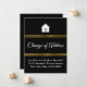 ¿Necesitas hacer un anuncio conmovedor? Esta tarjeta es de color negro y oro falso con texto en blanco y puedes personalizar la tarjeta con tu nombre y nueva dirección. En la parte superior hay una casa. En la parte inferior hay un texto blanco personalizado para el nombre y la dirección nueva. En el centro hay un fondo negro para el texto personalizado (se muestra: 'Cambio de dirección'). El dorado es una representación artística (sin lámina).