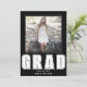 Esta invitación de fotos de graduación de la Clase 2025 para los muestra un sofisticado diseño en blanco y negro. La palabra "GRAD" aparece de forma destacada en una tipografía en blanco y negrita sobre un fondo negro elegante, añadiendo un toque de elegancia al conjunto. En la parte delantera de la invitación aparece el nombre del graduado y una foto, bellamente captada y colocada sobre el fondo negro, creando un sorprendente contraste. En la parte trasera hay una foto y un espacio adicionales para que añadas tu texto personalizado, lo que lo convierte en un recuerdo verdaderamente memorable para este hito especial. La cobertura se ha diseñado utilizando algunos activos de Freepik.com