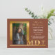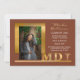 Diseño de anuncio de graduación de médico con caduceo "MD" en texto dorado y una foto, elegante y sofisticado, creado por Holiday Hearts Designs (derechos reservados). La plantilla de foto de muestra es cortesía de Unsplash.