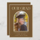 Esta elegante tarjeta de invitación de graduación celebra el hito especial de la graduación de una manera elegante y minimalista. La tarjeta incluye un espacio de fotos de personalizable con un marco clásico de arco, junto con detalles de texto para el nombre del graduado, el año de clase y la escuela. El fondo marrón neutro aporta un toque sofisticado, perfecto para aquellos que aprecian los diseños atemporales y sobrios. Esta tarjeta está disponible como una descarga digital imprimible o como un keepsake impreso, lo que facilita compartir su logro con la familia y amigos.