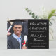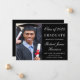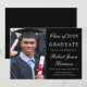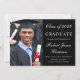 Elegante invitación de graduación de la universidad negra con una foto del graduado, su nombre y año de clase en un elegante guión blanco y su universidad, especialista y honores en tipografía blanca moderna.