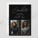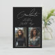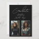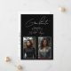 Anuncie el hito de su graduación con estilo con esta sofisticada invitación de graduación moderna y negra. Con un fondo negro audaz, una tipografía blanca elegante y un espacio para dos fotos personales, este diseño exuda clase atemporal y encanto contemporáneo. El diseño elegante resalta el nombre del graduado en un guión elegante escrito a mano, creando un aspecto personalizado y de alta gama. Perfecto tanto para los egresados de secundaria como universitarios, esta invitación es fácilmente personalizable para reflejar los logros de cualquier graduado.