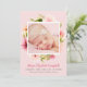 Da la bienvenida a tu bebé con este elegante anuncio de nacimiento con foto que presenta una foto de recién nacido envuelta en una corona de acuarela de dahlias rosadas, rosas y follaje verde sobre un bonito fondo rosa pálido. El nombre en escritura rosa y los detalles del nacimiento junto con el mensaje "Welcomed With Love" completan la parte delantera. Un exuberante patrón floral y de vegetación adorna la parte trasera. El color de fondo rosa se puede modificar. Todo el texto es totalmente personalizable.