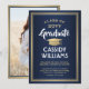 Comparte la alegría de una graduación de escuela secundaria o universidad con estos anuncios personalizados de fotos en azul marino, dorado y blanco. (CONSEJO PARA COLOCAR LA IMAGEN: Una forma fácil de centrar una imagen exactamente como la deseas es recortarla antes de subirla al sitio web de Zazzle.) Esta plantilla incluye el nombre del graduado, año de graduación y escuela, así como cualquier texto de tu elección, como detalles de la invitación a la fiesta, honores especiales, título del grado, cita inspiradora favorita, información de contacto del graduado, planes de educación futura o nuevo puesto de trabajo. Todo el texto es fácil de personalizar. El diseño presenta un fondo moderno con degradado azul, borde con efecto de lámina dorada y gorra de graduación, caligrafía elegante, tipografía tradicional y una foto de tu elección, como una foto de último año o imagen de la ceremonia de graduación. Ten en cuenta que el dorado es un color impreso, no lámina metálica. Estas tarjetas de anuncio de graduación son una forma moderna y elegante de compartir la celebración de tu día