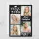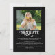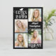 Anuncie el logro de su graduado con esta moderna invitación de graduación de collage con 5 fotos (4 en la parte delantera y 1 en la parte trasera) y elegante tipografía de CLASE DE AÑO y GRADUATE y tipografía de guiones para el nombre de su graduado. CAMBIOS: Todos los estilos de letra de texto, colores, tamaño y ubicación, así como el gráfico de la tapa de graduación y los colores de fondo pueden cambiarse a colores escolares o coordinarse colores para las imágenes (mostrados en blanco sobre negro). La parte posterior tiene un campo de texto personalizado opcional para incluir información adicional sobre el graduado (si no lo desea, elimine el texto de ejemplo en ese campo). ASISTENCIA: Para obtener ayuda con la modificación o personalización del diseño, el cambio de color, el cambio de tamaño o la transferencia del diseño a otro producto, póngase en contacto con el diseñador ANTES DE PEDERLO a través de la pestaña del MENSAJE de chat de Zazzle que aparece a continuación o envíe un correo electrónico a makeitaboutyoustore@gmail.com.