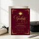 Anuncie un orgulloso hito académico con este elegante anuncio de graduación, diseñado con un rico fondo burgundy, tipografía dorada refinada y acentos decorativos clásicos. Con elegante letra de escritura ornamentada, un emblema de gorra de graduación y estilo de diseño formal, esta invitación es ideal para celebrar a un graduado universitario de una manera atemporal y sofisticada.