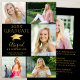Anuncie el logro de su graduado de secundaria o universitario con esta elegante invitación de fotos en negro y oro (u otro color de fondo) con 6 fotos (5 en la parte delantera y 1 en la parte trasera), un elegante gorro de graduación o mortero de Relieve metalizado metálico falso, el título YEAR GRADUATE con el nombre de su graduado en un guión escrito a mano y un nombre escolar a la moda. La parte trasera está diseñada para incluir información sobre los logros de sus graduados, actividades y planes futuros, según lo deseado. ASISTENCIA: Para obtener ayuda con la modificación/personalización del diseño, el cambio de color, la transferencia del diseño a otro producto o si desea coordinar elementos, póngase en contacto con el diseñador ANTES DE PEDIRLO a través de Zazzle Chat o makeitaboutyoustore@gmail.com.