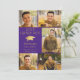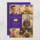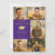 Anuncie el logro de su graduado de secundaria o universitario con esta elegante invitación fotográfica morada y dorada (u otro color de fondo) que incluye 6 fotos (5 en la parte delantera y 1 en la parte trasera), un elegante gorro de graduación de Relieve metalizado de oro metálico o mortero, el título YEAR GRADUATE con el nombre y la escuela de su graduado. La parte trasera está diseñada para incluir información sobre los logros de sus graduados, actividades y planes futuros, según lo deseado. ASISTENCIA: Para obtener ayuda con la modificación/personalización del diseño, el cambio de color, la transferencia del diseño a otro producto o si desea coordinar elementos, póngase en contacto con el diseñador ANTES DE PEDIRLO a través de Zazzle Chat o makeitaboutyoustore@gmail.com.