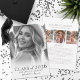 Una invitación de graduación sencilla y elegante, inspirada en el boho, con una estética luminosa y brillante. La parte delantera incluye una foto de página completa con un filtro en blanco y negro y un gradiente blanco suave en la parte inferior, enmarcando el texto de forma bonita. "Clase de 2025" aparece en fuentes grises oscuras, seguido por el nombre del graduado y la escuela en un elegante guión manuscrito para un toque eterno. El filtro en blanco y negro se puede eliminar fácilmente en el editor completo para obtener una apariencia más vibrante. La parte de atrás muestra un collage de tres fotos o una banda de fotos, junto con el nombre del graduado, la escuela y el espacio para un mensaje personal que resalta los logros y los planes futuros. El diseño continúa con un fondo blanco y fuentes grises oscuras, creando un ambiente armonioso y sofisticado. Personalizable completo para adaptarse a su estilo o a los colores de la escuela.