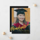 Celebra la graduación universitaria, universitaria o de secundaria de su hija con esta elegante tarjeta de invitación de graduación de fotos de grado en oro y negro. Con una elegante caligrafía de guión dorado y una plantilla de fotografía para graduados, este diseño capta la emoción de nuevos comienzos y celebración alegre. Personalízalo con una preciada foto de tu graduado usando la plantilla de fotos fácil de usar, y resalta los detalles de los eventos en una tipografía impresionante. Diseñada por la artista Catherine Sweetman, esta invitación única combina la elegancia con la emoción del logro de su hija, convirtiéndolo en la forma ideal de reunir a sus seres queridos y marcar este hito especial.