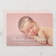 La tarjeta de presentación de fotos de nacimiento simple y dulce presenta a tu bella bebé recién nacida con una foto de paisaje en la parte delantera y una foto cuadrada extra en la parte trasera. Personalice el elegante guión de color blanco con el nombre completo del bebé y personalizar el texto moderno con todas las importantes estadísticas de nacimiento. Un patrón de puntos de polka abstractos blancos se viste en la parte posterior de este diseño de tarjetas de dos caras. El color de fondo rosa de color rosa claro en la parte posterior de la tarjeta se puede modificar para coordinar con las fotos.