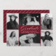 Elegante invitación de graduación con 6 fotos que bordean el diseño. "Graduado" se muestra en un guión blanco moderno de caligrafía en un fondo borgoñoso. Personalice la parte delantera de la invitación de graduación fotográfica agregando el nombre del graduado, la escuela y el año de graduación. La invitación se invierte para mostrar un patrón de rayas diagonales en blanco y borgoña. La invitación de graduación con fotos múltiples es perfecta tanto para graduados de secundaria como universitarios.