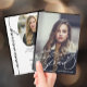 Su foto, nombre, año de graduación y la palabra Graduado en elegante letra blanca en la parte frontal, estos anuncios de graduación presentan sus detalles y otra foto en la parte posterior en cualquier fondo de COLOR que se adapte a su foto. MÁS estilos, tamaños, tarjetas de aviso, invitaciones en nuestra tienda.