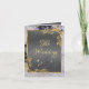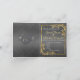 Este elegante anuncio de boda presenta un centro gris sobre un fondo de mármol negro y blanco, enmarcado con rosas y hojas de oro, adornado con un corazón de pergamino plateado.