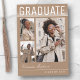 Tarjetas de invitación de graduación modernas, modernas y elegantes, con elementos de diseño de texto moderno con escritura a mano. Tres fotos de graduados resaltan la parte delantera de la tarjeta con "Graduado" acentuado en un elegante gradiente blanco. La parte posterior de la tarjeta ofrece espacios de texto personalizados para obtener información sobre su graduación y viaje futuro. Escribir en blanco sobre la moda taupe beige o personalizar fácilmente el fondo para que coincida con el color primario de su escuela o cualquier color de su elección. Perfecto para el bachillerato, la universidad y la universidad.