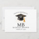 Una moda y una moderna tarjeta de graduación con un elegante diseño de monograma en negro y oro. Este elegante inserto muestra un dramático monograma de escritura dorada con elegantes toques, un tapón de graduación de oro de acuarela, y tu nombre completo en un elegante tipo de letra serif, junto con tu curso de graduación. Una forma perfecta de compartir su información de contacto con amigos y conocidos, asegurándose de que puedan mantenerse en contacto después de la graduación. Completamente sofisticado.