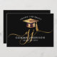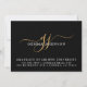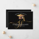 Una moda y una moderna tarjeta de graduación con un diseño elegante de monograma dorado sobre negro. Este elegante inserto muestra un dramático monograma de escritura dorada con elegantes toques, un tapón de graduación de oro de acuarela, y tu nombre completo en un elegante tipo de letra serif, junto con tu curso de graduación. Una forma perfecta de compartir su información de contacto con amigos y conocidos, asegurándose de que puedan mantenerse en contacto después de la graduación. Estilo moderno y refinado. Utilícelo como inserción o invitación.