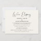 Elegante invitación de anuncio de boda privada de crema ligera o escapada y recepción. "Estamos escapándonos" está escrito en una tipografía elegante y puedes agregar tus nombres, fecha de boda y detalles de la invitación de recepción en tipografía moderna simple.