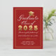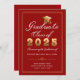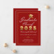 Anuncie su graduación con estilo con esta elegante tarjeta de invitación personalizado que presenta un diseño tipográfico con las palabras "Graduate Class of 20XX" acentuada por un falso gorro graduado de oro sobre un fondo rojo con texto personalizado en escritura blanca. Diseñado por Susan Coffey.