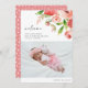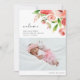 Elegante tarjeta de planchado de anuncio de nacimiento adorable con ilustraciones de sandía roja y fruta granada con rosas rosa rosa rosa de color claro floral, lavanda y follaje verde en la parte delantera. En la parte de atrás se ve un fondo de un punto de polka rosa coral. Hay 2 fotos de tu recién nacido que se pueden añadir en esta tarjeta (frontal y posterior). Tarjeta perfecta para anunciar la llegada de su recién nacido con sus estadísticas de nacimiento. Genial tanto para el niño como para el chica. ¡Ideal para las estaciones de verano y primavera!