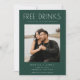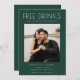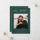 Boda divertida salva las fechas en un diseño verde esmeral "Bebidas gratis (y nos vamos a casar) con tu foto. Estos modernos salvan las fechas son perfectas para la divertida pareja que no puede esperar a celebrar en su boda con familia y amigos.