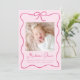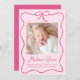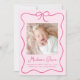 Bienvenidos a tu pequeña en estilo dulce con este anuncio de nacimiento de una bebé rosa que presenta la foto cuadrada de tu bebé enmarcada por un encantador diseño de arco rosado y cinta en un suave fondo rosa claro. Su nombre está resaltado en un guión rosa caprichoso, con detalles de nacimiento y nombres de familia mostrados cuidadosamente debajo para un toque personalizado. Esta invitación femenina y reconfortante es perfecta para presentar a sus recién nacidos a seres queridos con elegancia y alegría. Ideal para las niñas, este diseño es a la vez atemporal y adorable, lo que lo convierte en un tesoro para los años venideros.